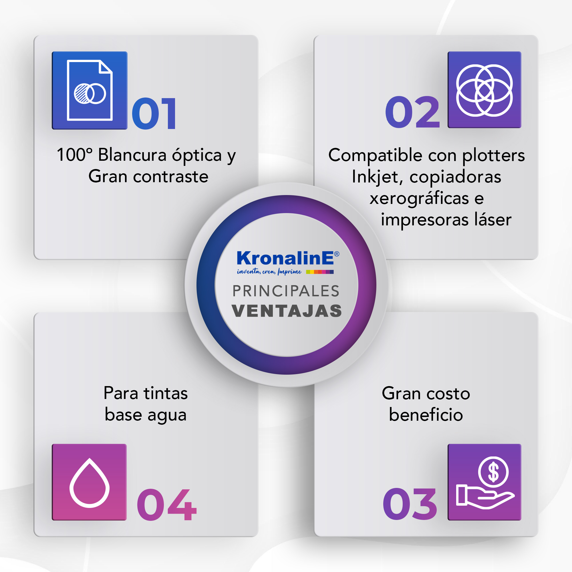 - Compatible con todos los Plotters Inkjet con tintas Dye y Pigmentadas, Copiadoras Xerográficas e Impresoras Láser.