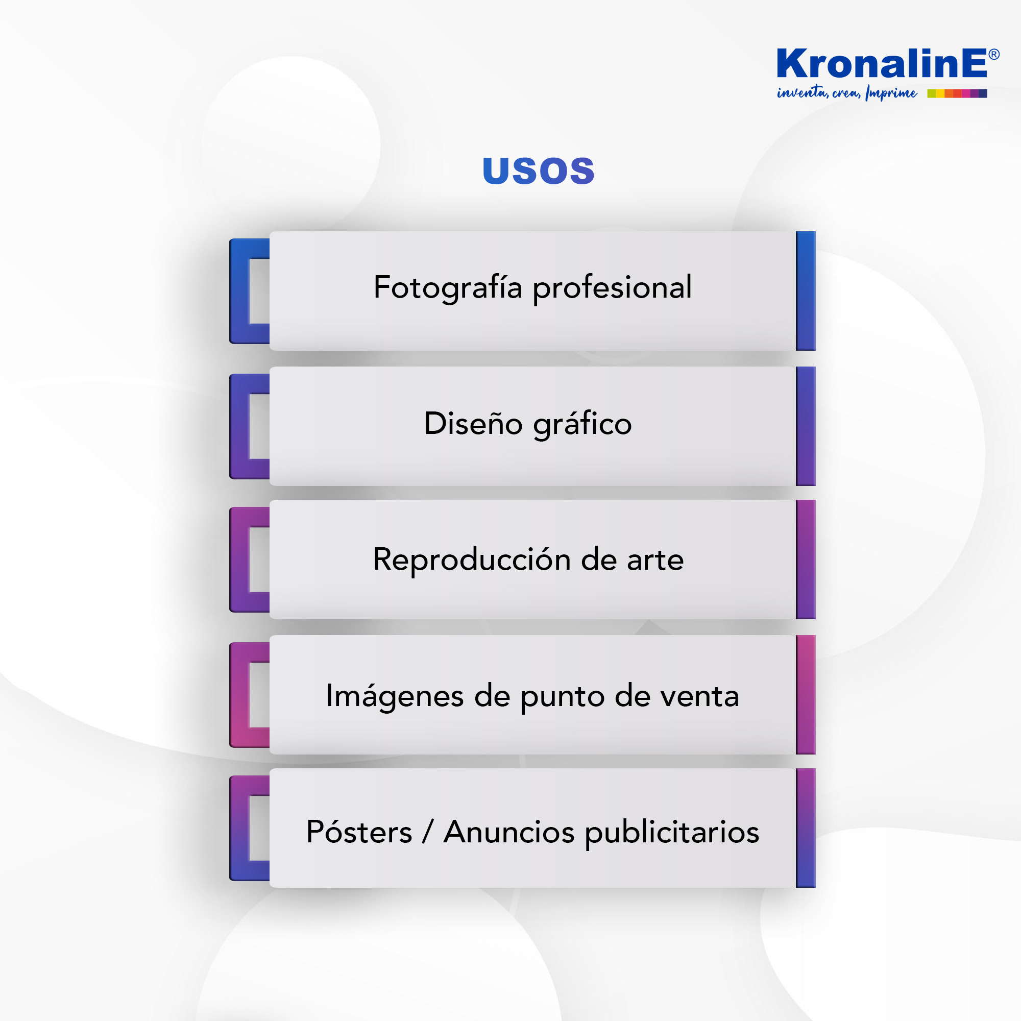 Papel fotográfico alto brillo de alta resolución recubierto con una capa de PE (polietileno) en ambas caras y una capa microporosa de la más alta calidad la cual proporciona una excelente absorción de tinta y alta definición en la imagen, recomendado para aplicaciones fotográficas y de diseño de alta calidad con una excelente relación costo beneficio.