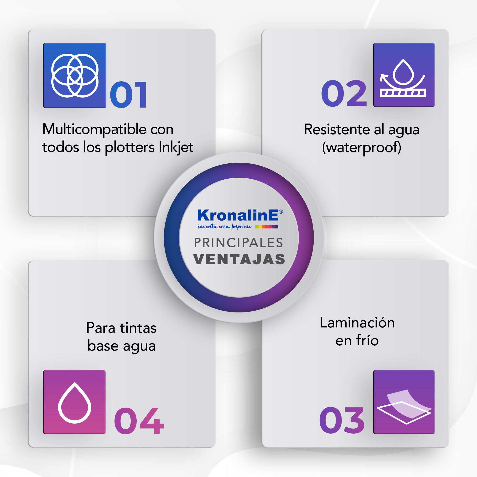 - Multicompatible con todos los plotters InkJet termales y piezoeléctricas comerciales tales como HP*, EPSON* y CANON* que cuenten con tintas Pigmentadas o Dye.