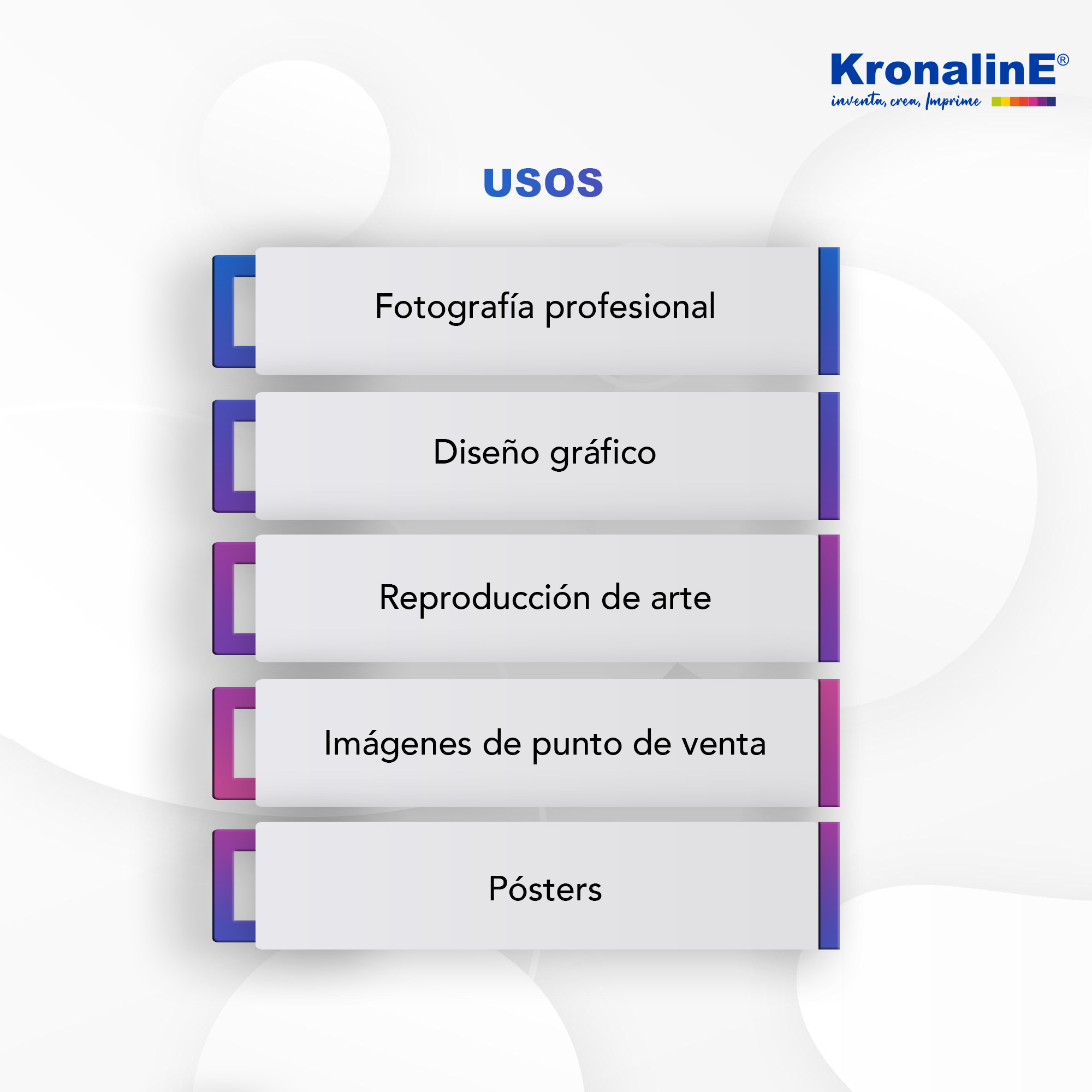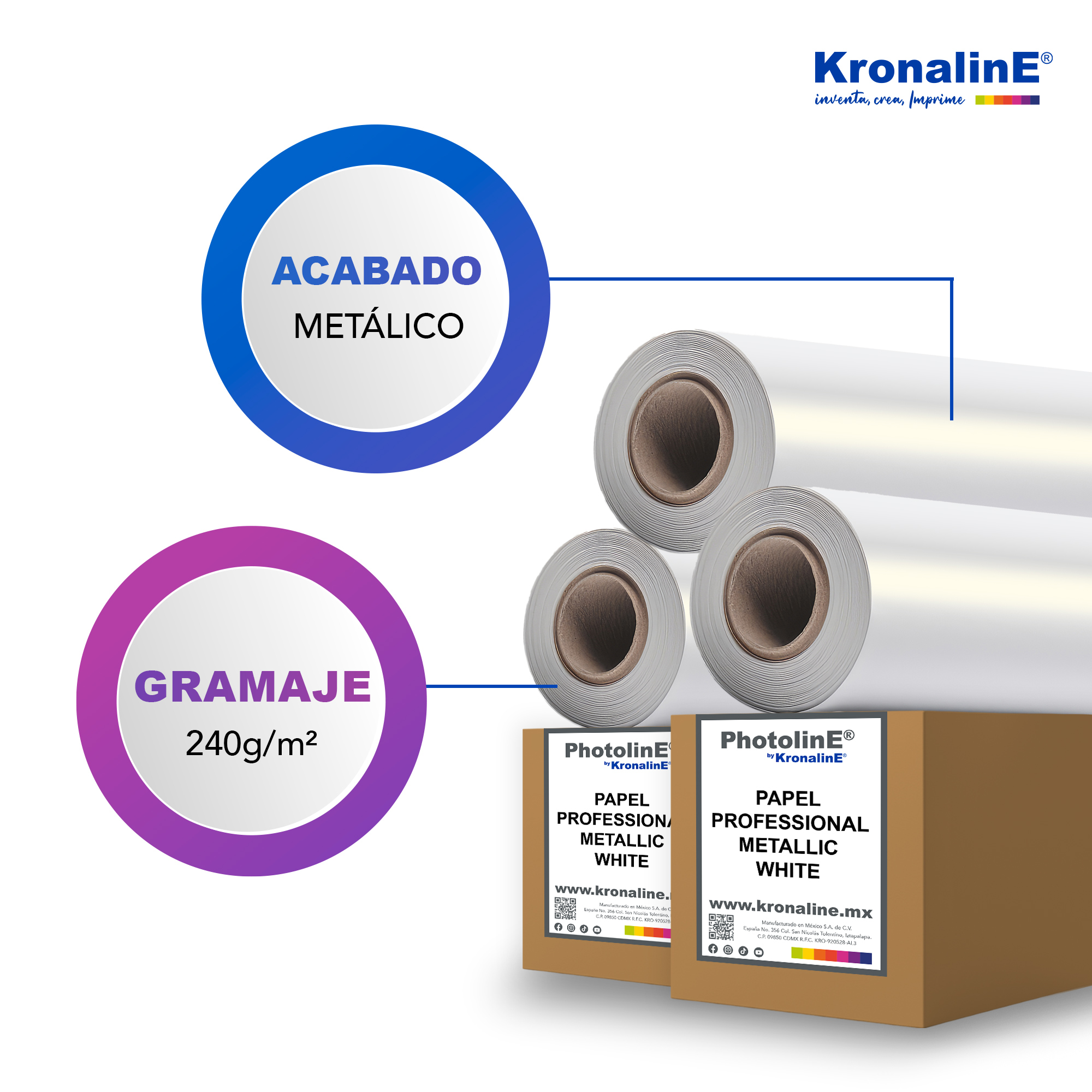 Este papel profesional con acabado Metálico Blanco (tipo nácar) esta compuesto de un sustrato base de alto peso con un recubrimiento de resina y una capa microporosa, con lo que se logra una mayor definición y control de tinta. Su acabado Metálico Blanco, lo hace único e inigualable en el mercado para aquellos trabajos que requieren la mayor calidad de impresión.