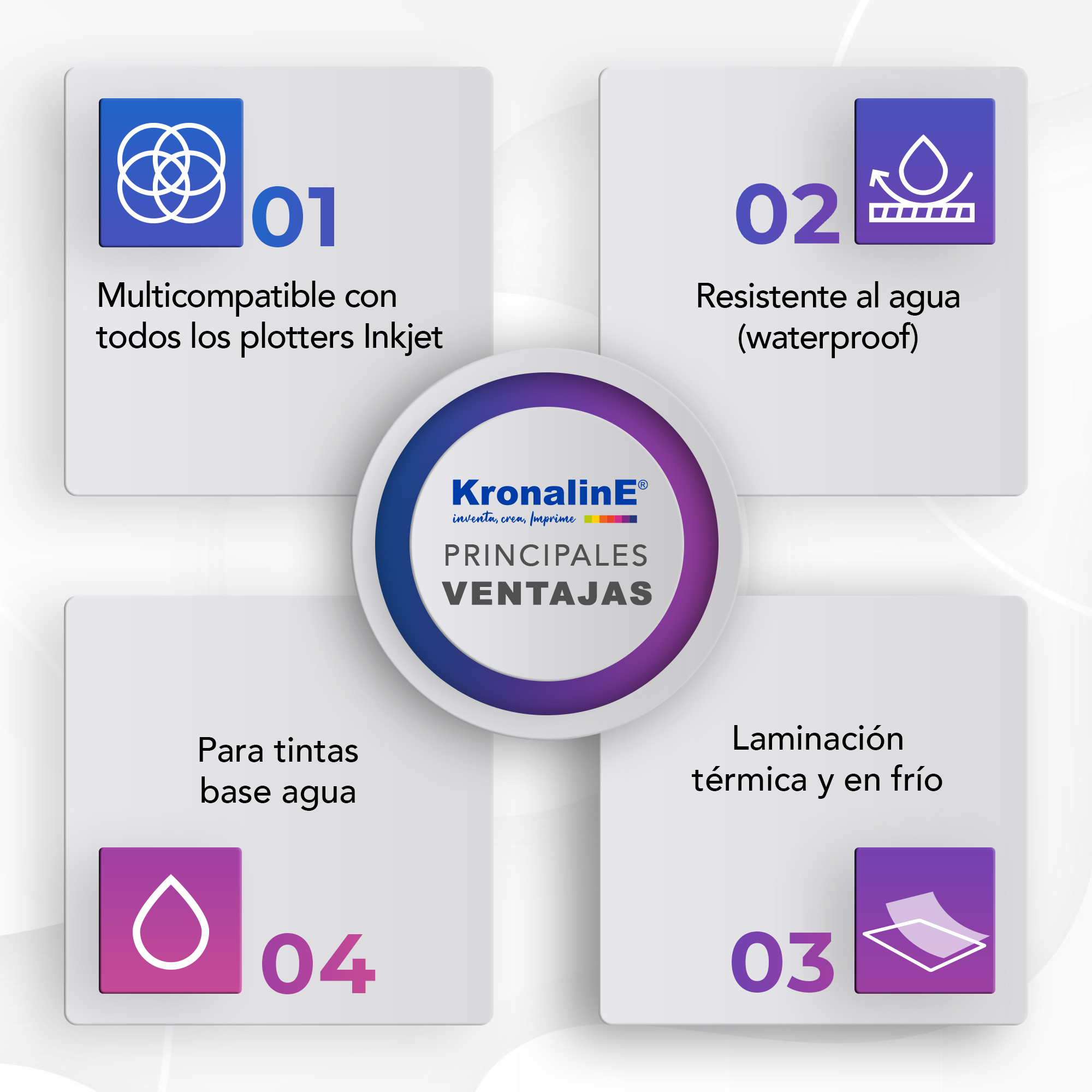 - Multicompatible con todos los plotters InkJet e impresoras termales y piezoeléctricas comerciales tales como HP*, EPSON* y CANON* que cuenten con tintas Pigmentadas o Dye.
