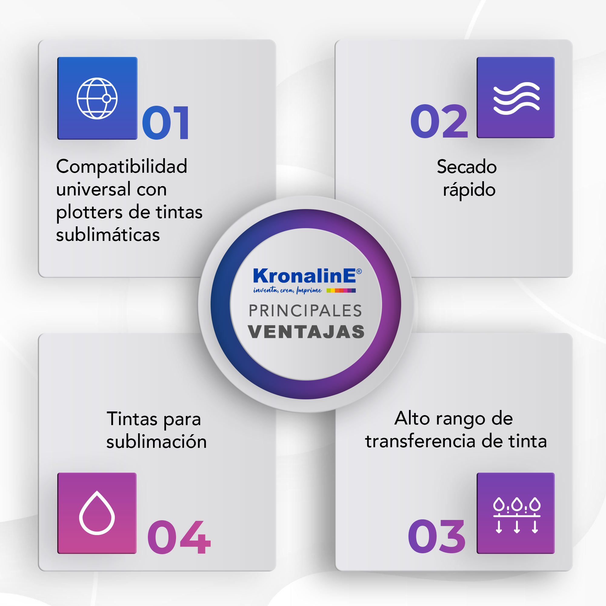 - Multicompatible con todos los equipos de tintas especiales para sublimación