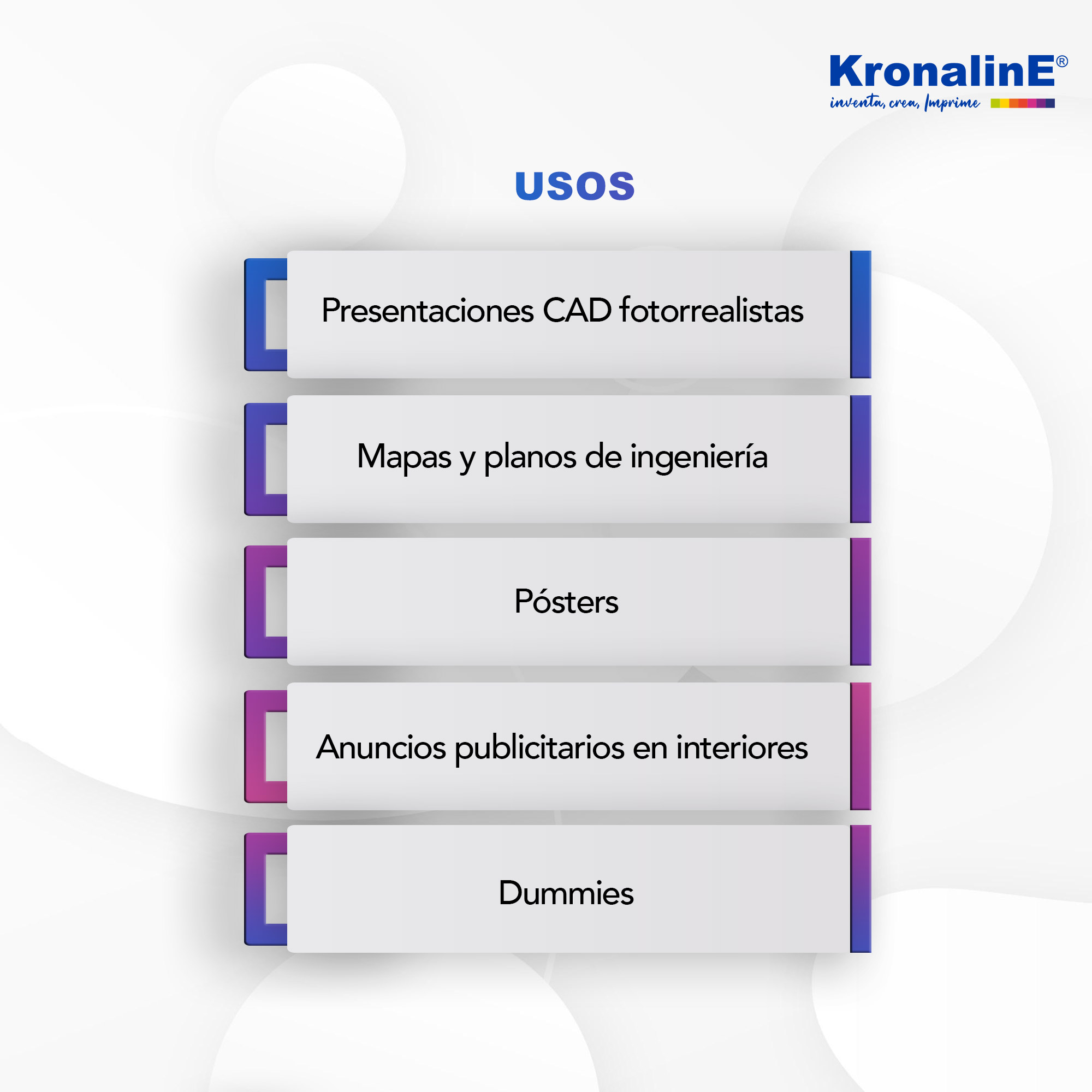 Papel recubierto con acabado mate, ideal para una gran variedad de aplicaciones que requieran impresiones a color de alta resolución con menores cargas de tinta en un papel de alta calidad con un gran costo beneficio.