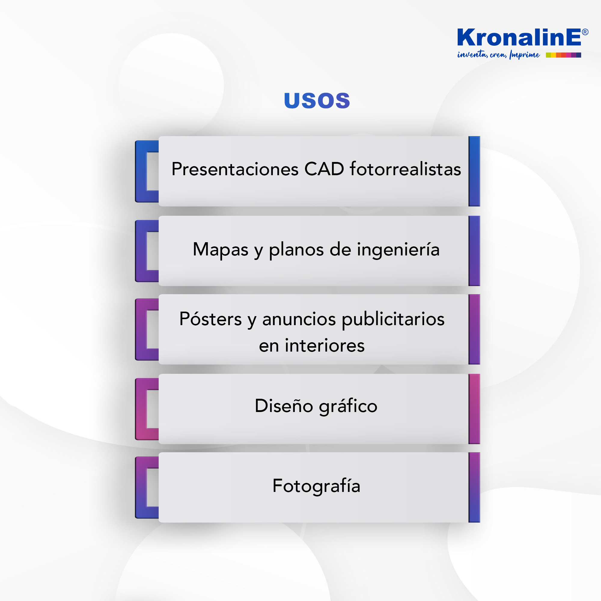 • Multicompatible con todos los plotters Inkjet e impresoras termales y piezo eléctricas comerciales tales como HP*, EPSON* y CANON* que cuenten con tintas Pigmentadas o Dye. *Marca propiedad de sus fabricantes.
