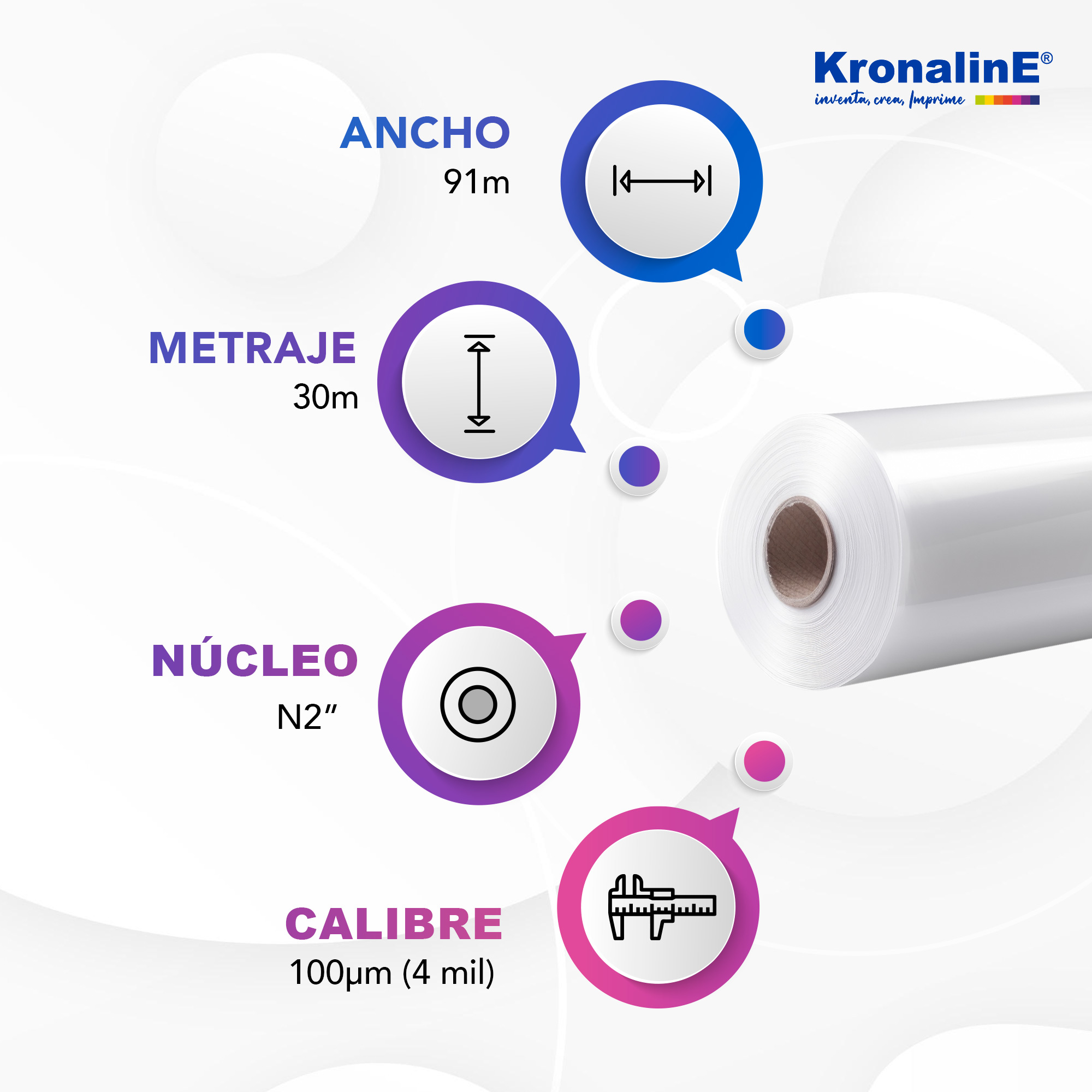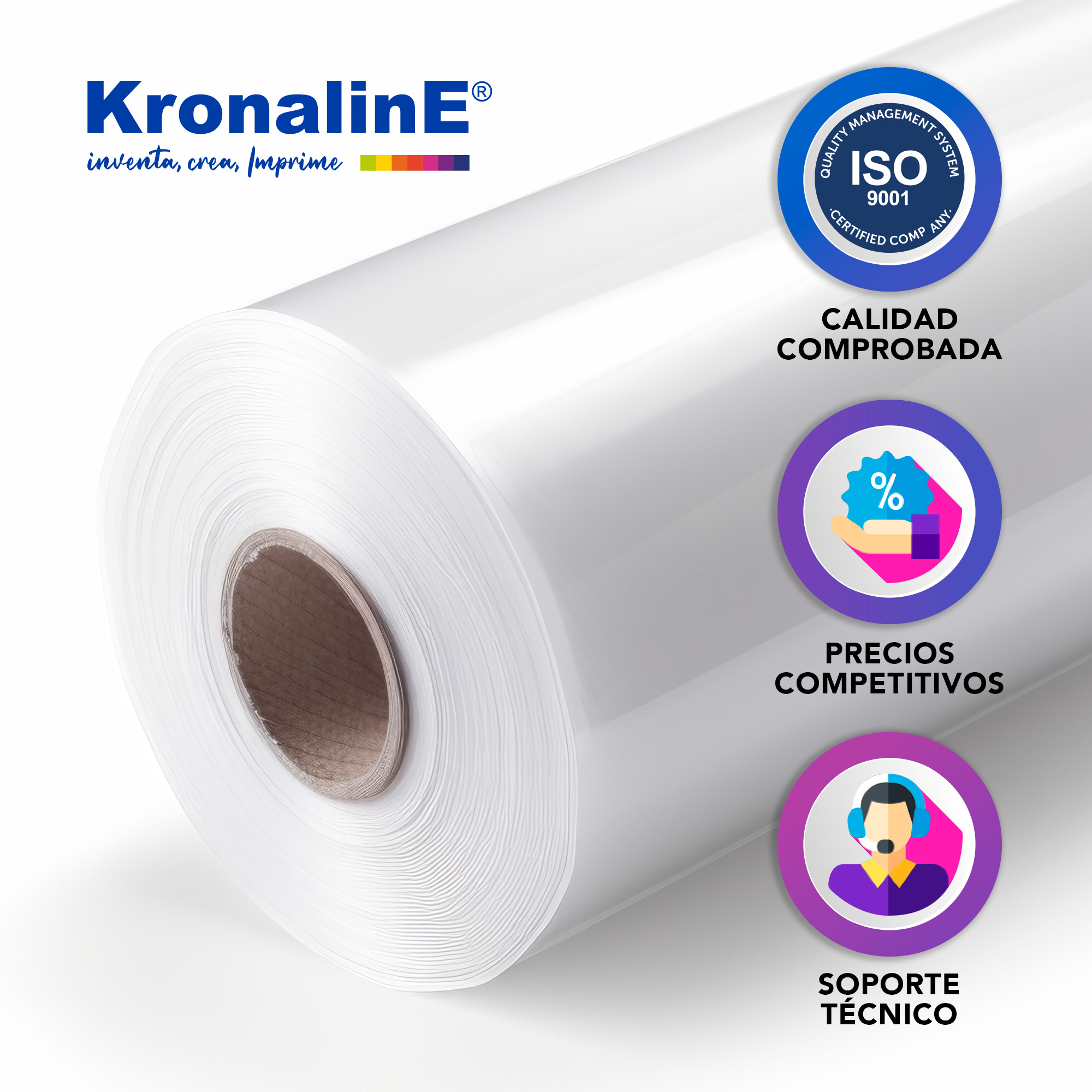 Película de poliéster transparente diseñada para impresiones a color y monocromáticas de alta calidad manteniendo su claridad y transparencia.