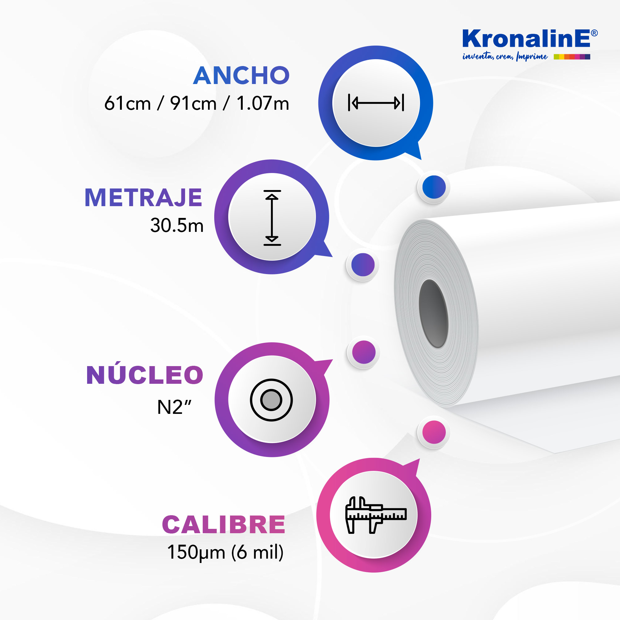 Vinyl calandrado con adhesivo acrílico permanente, cuenta con un recubrimiento resistente al agua que evita descoloramiento y permite la reproducción de imágenes con colores fieles y vibrantes. Es ideal para aplicaciones de corto plazo en anuncios flexibles o montados.